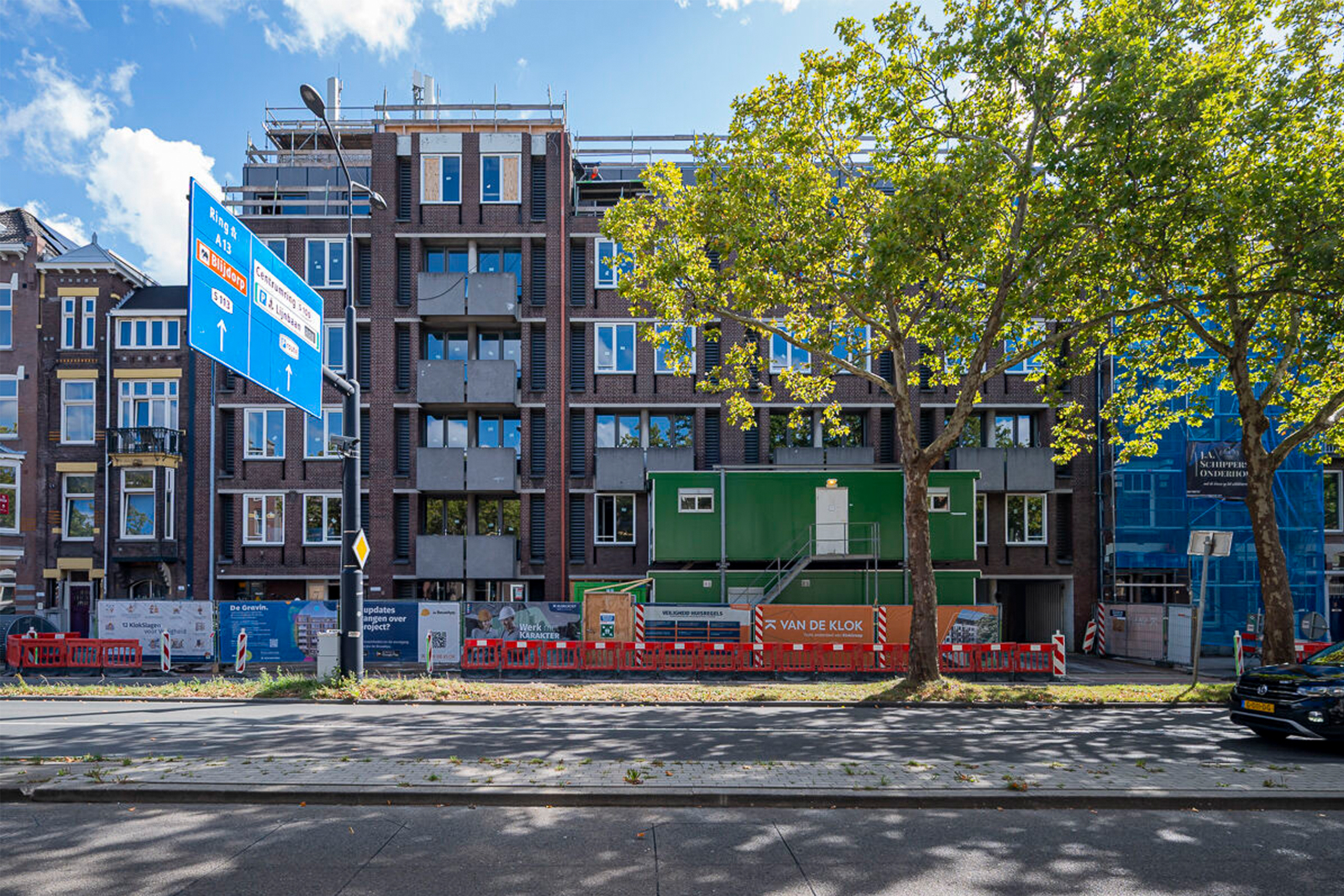 De transformatie van wooncomplex De Gravin aan de ’s‑Gravendijkwal in Rotterdam verloopt voorspoedig en krijgt steeds meer vorm. De oplevering vindt plaats in 2026. Het voormalige kantoorpand verandert in een wooncomplex met 55 sociale huurwoningen. Het hoofdgebouw biedt ruimte aan 48 appartementen, terwijl op het achterterrein 7 duurzame, tweelaagse houten woningen verrijzen. Bovendien komt er in de ondergrondse parkeergarage plek voor 26 auto’s en 135 fietsen, wat bijdraagt aan een toekomstgerichte stedelijke mobiliteit.