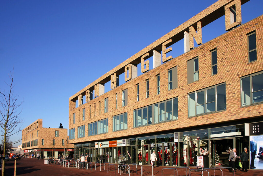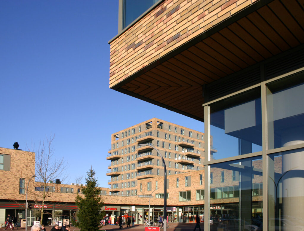 6500m² winkelcentrum, 54 dakwoningen, 45 torenappartementen en 19 eengezinswoningen